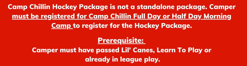 Camp Chillin' Hockey Package can only be purchased by those registered for Camp Chillin Full Day or Half Day Morning camps!